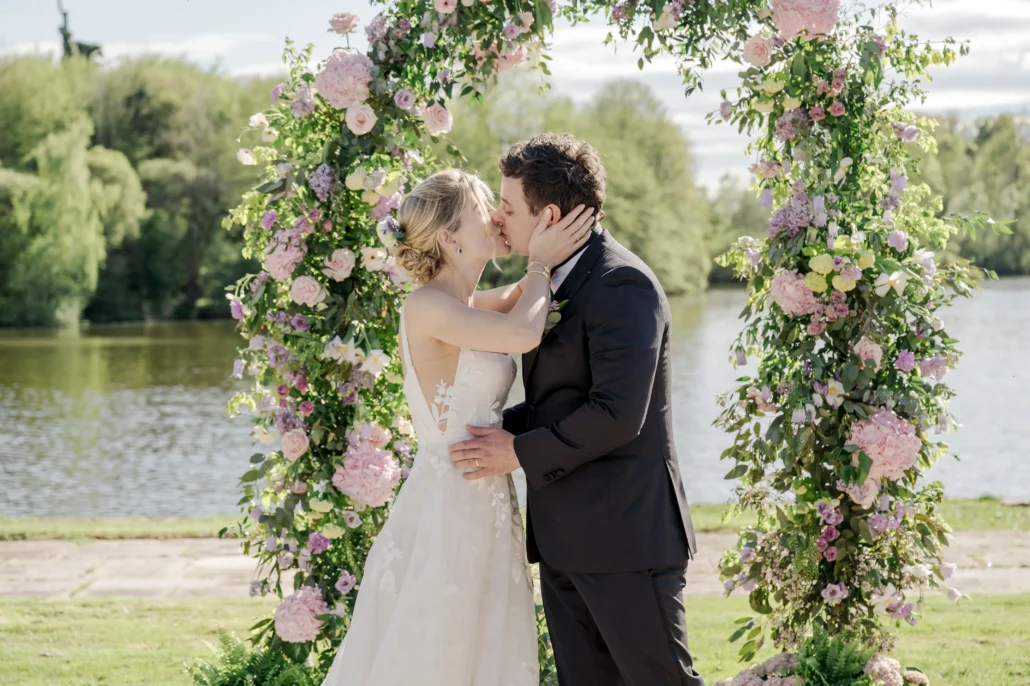 Nestled in the heart of the Charente region, Domaine des Étangs offers an idyllic setting for an outdoor ceremony. A floral arch facing the lake created a poetic and intimate atmosphere for the couple’s vows. The ceremony was simple, heartfelt, and deeply moving – a reflection of their connection and personalities.